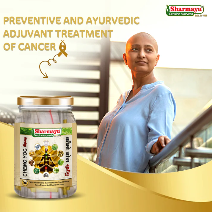 Chemo Yog by Sharmayu is an Ayurvedic formulation designed to support cancer patients, particularly those in second-stage cancer and various types, by boosting immunity and aiding recovery. It features a blend of 22 types of bhasma, including potent ingredients like Heera Bhasma, Swarna Bhasma, and Roupya Bhasma, combined with Shilajit and Daruharidra for detoxification and vitality enhancement.​