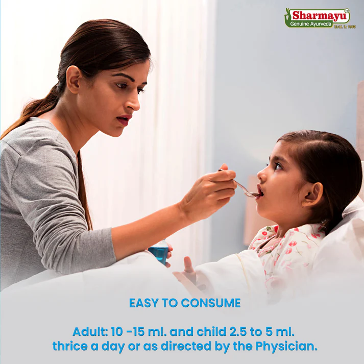सेवन विधि: वयस्क 10 से 15 मिली0 तथा बालक 2.5 से 5 मिली0 दिन में 3 बार या चिकित्सक के परामर्शानुसार।